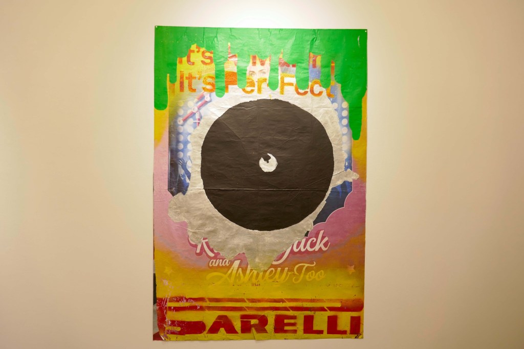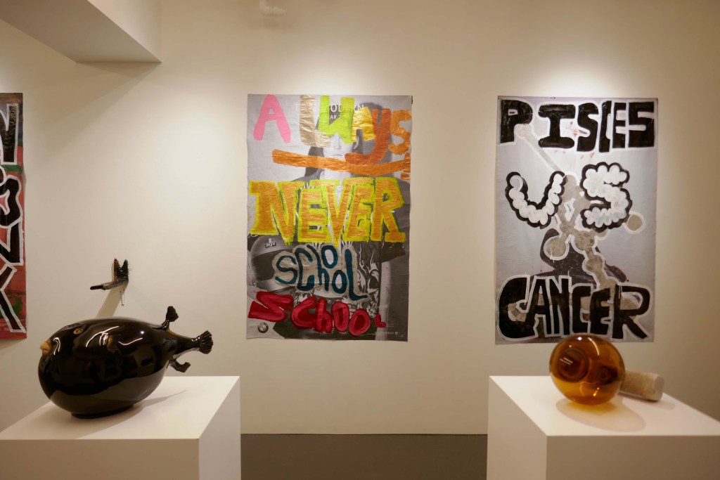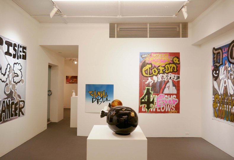 まず目に入ってくるのは、壁一面に広がる大きくてクールなポスター。ストリートのカルチャーやグラフィックが好きな人は共鳴する部分も多いだろう。この作品はどのようにフグと繋がっているのだろうか。