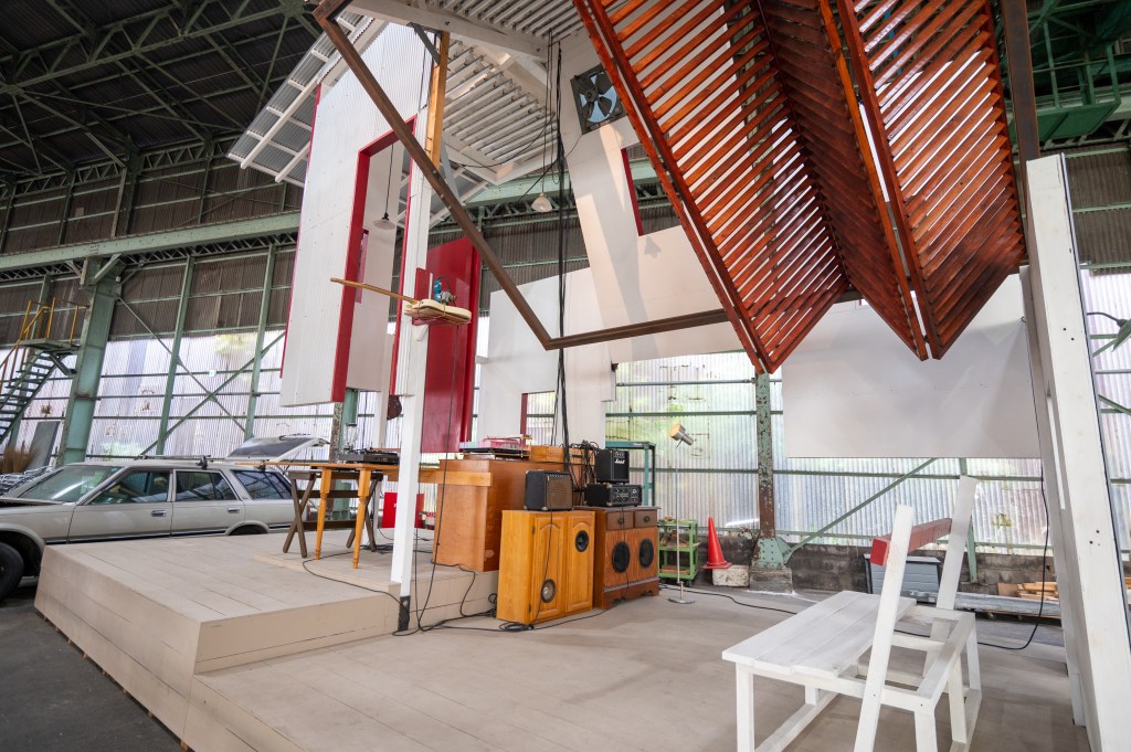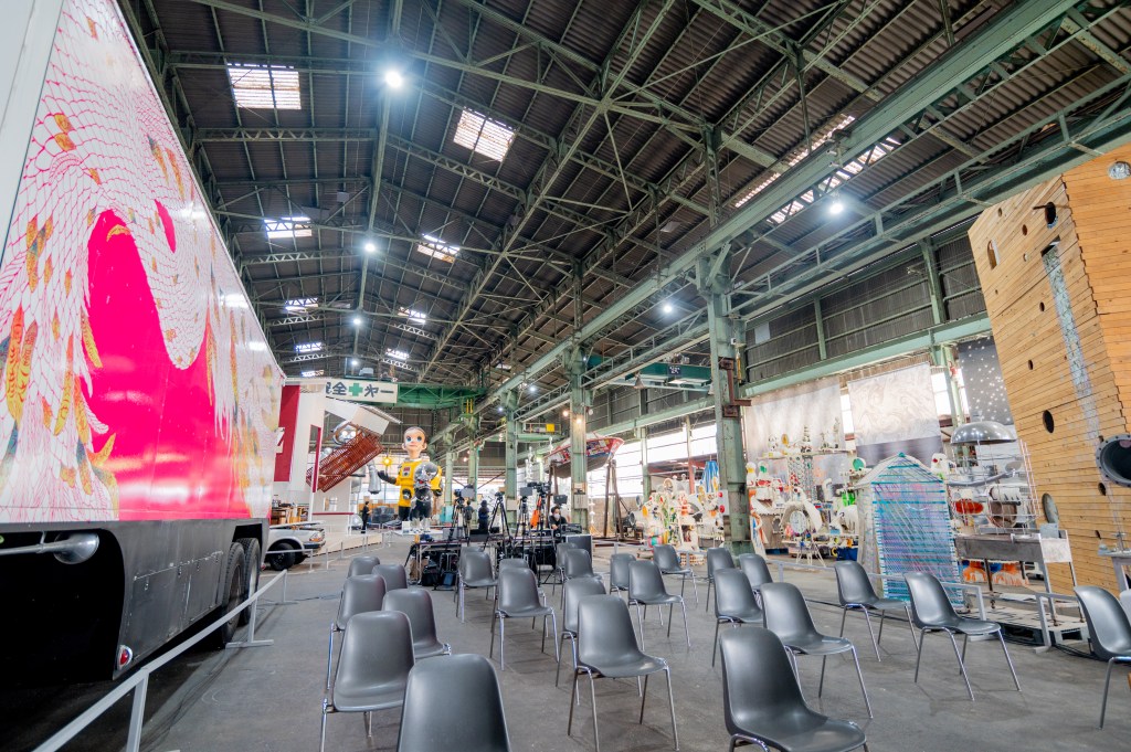 会場は広さ約1,000㎡・高さ9mの鋼材加工工場・倉庫跡地。普段は大規模作品の保管庫として活用されている「MASK(MEGA ART STORAGE KITAKAGAYA)」が、期間限定で ”見せる収蔵庫” として公開されているのだ。