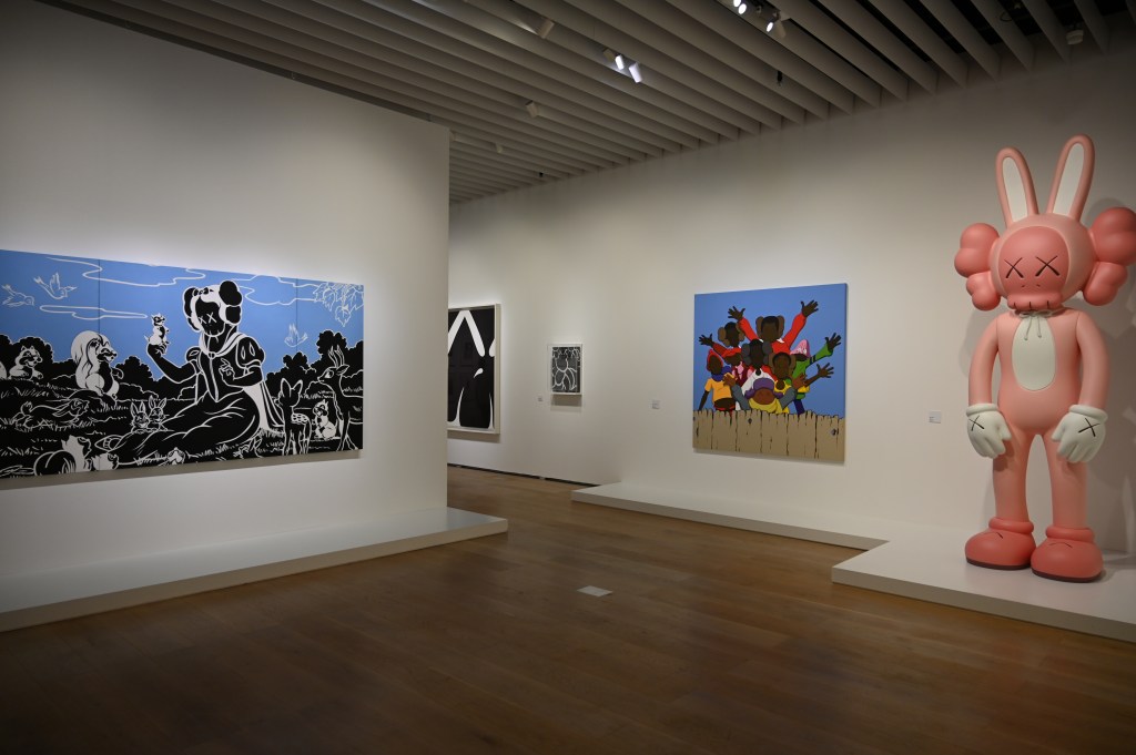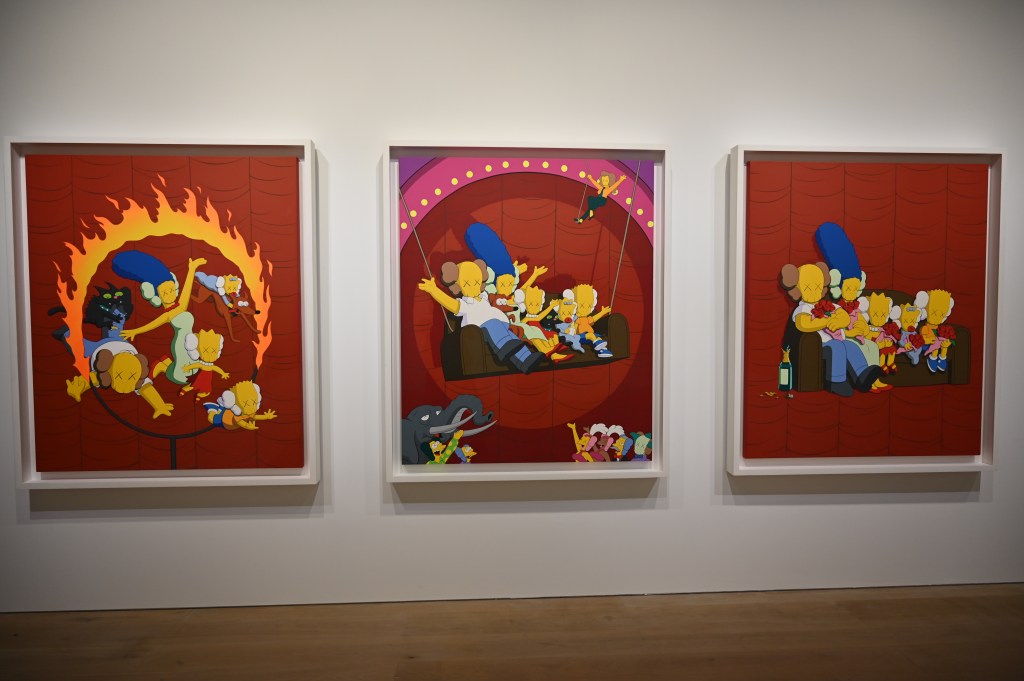 KAWS作品の中でも約16億4000万円という最高落札価格を記録したのが「THE KAWS ALBUM」。これはBAPE®で有名な日本のデザイナーNIGO ®が、自身で経営するカフェに飾るために依頼した「キンプソンズシリーズ」の中の一作品なのだが、今回はそのシリーズの別の作品も展示されているのでそちらも見逃せない。