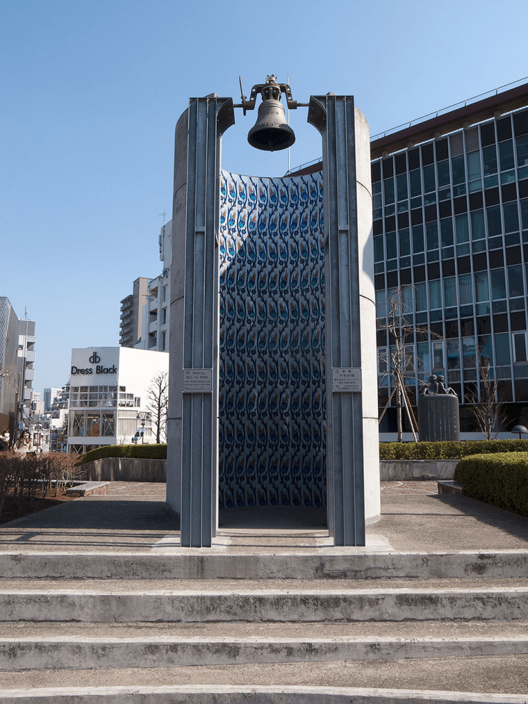 1932年10月1日、3つの町が合併して渋谷区が誕生した。2002年に10月1日を「平和・国際都市 渋谷の日」と条例を制定。2005年から、トルコ共和国イスタンブール市ウスキュダル区と「友好都市協定」を締結し、以来交流を深めてきた。この平和の鐘は、2010年にトルコから贈られた記念碑である。中に敷き詰められているのは、モスクなどでもよく見られる「イズニックタイル」という、1000年以上の長い歴史を誇るトルコの伝統手工芸。慣れ親しんだ街の新たな発見を与えてくれるモニュメントである。