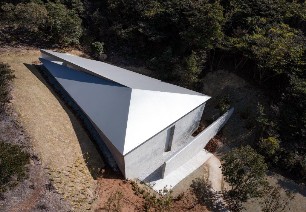 建物は地形にあわせた台形のような形状をしており、二重構造のコンクリートの壁、切り込みの入った鉄板の屋根を持ち、その開口部から建物内部に雨や風、光といった自然の呼吸をそのまま取り入れる構造となっている。安藤忠雄は「小さくとも結晶のような強度を持つ空間を作ろうと考えた」という。