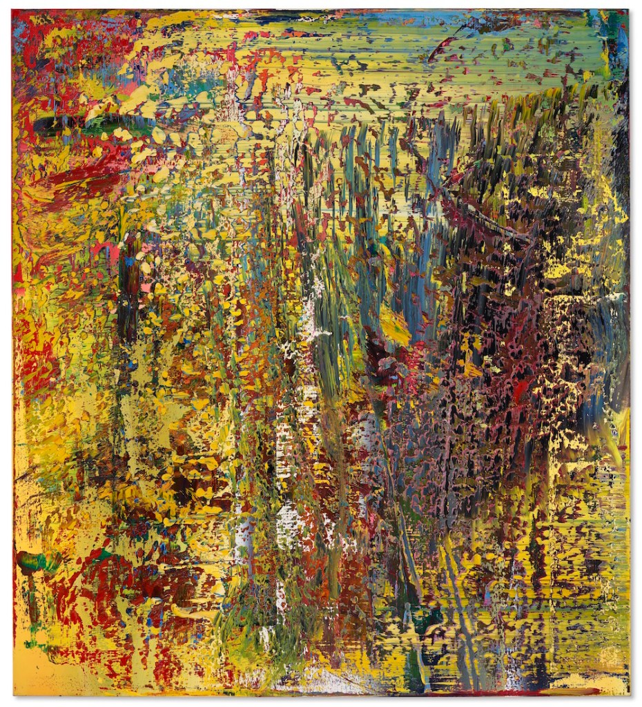 本作品は、200cm✕180.7cmと巨大なキャンバスに描かれ、リヒターの創意工夫と素材の扱い方の巧みさが表れた、色鮮やかで視覚的にも豊かな作品だ。