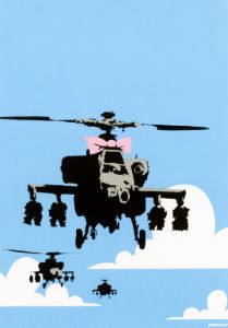 今回トップ5内で唯一の海外アーティストになったのは、イギリス出身の匿名ストリートアーティスト、バンクシー。この《Happy Chopper》はバンクシーのキャリア初期のもので、イスラエルとパレスチナの紛争に注目を集めるために、2002年ロンドン中心部に登場した壁画が元になった作品。「Chopper(チョッパー)」とは、朝鮮戦争時に生まれたヘリコプターを表すアメリカの俗語である。