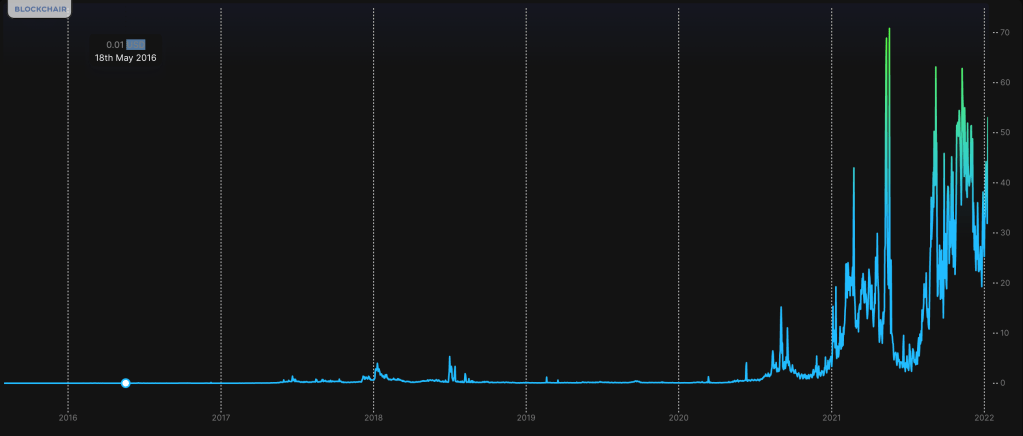 イーサリアムの手数料チャート(2022年1月12日時点)