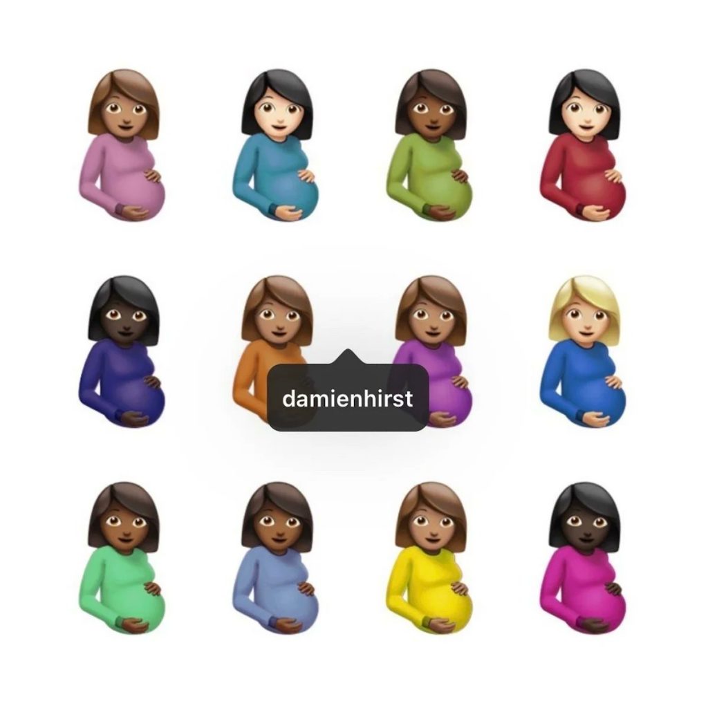 白い背景に12人の妊婦の絵文字が描かれたアートワークだが、このアートワークについてネット上では、等間隔に並んだ多人種の女性たちがハーストの代表「スポット・ペインティング」シリーズを想起させることや、2005年にハーストがパブリック彫刻の≪Virgin Mother≫等の過去作品で妊娠中の女性をモチーフとしていることなどが指摘された。(artnet news)
