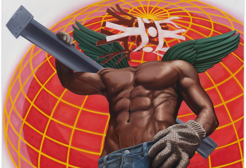 1988年生まれ。ブルックリンを拠点に活動するルーシア・ラブは、様々なオブジェクトを組み合わせて象徴的なポートレートやシーンを描くアーティスト。ラブの作品は、政治的な象徴性やフェミニスト的な倫理観が垣間見え、現代の社会が直面している現実や問題に触れている。《Gigantic》は、西洋のイメージで描かれることの多い「天使」を再考・再構築して、なぜそのようなイメージなのか?と疑問を投げかけ、「力」の価値が自動的に男性像に結びつけられる過ちについて視覚的に言及したジェンダーを追求した作品。