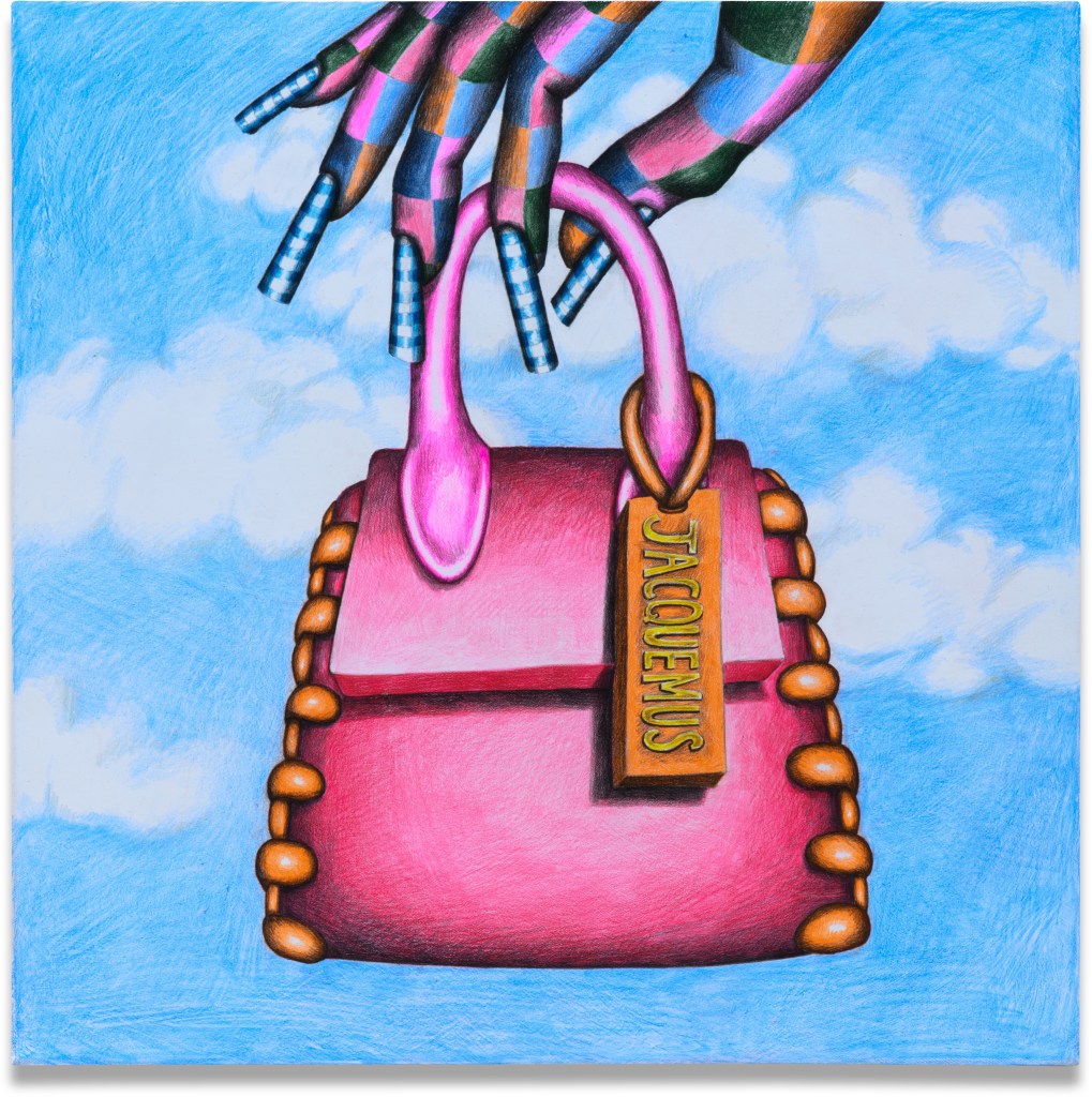 1944年ロサンゼルス生まれ。サマンサ・ローゼンワルドは、自身のアイデンティティをベースにして、色鉛筆で緻密な絵を制作するアーティスト。《Micromanager》は、「女性の身体」という欲望の対象とされる“容れ物”を、小さくて派手な鞄とカラフルな女性の手で比喩的に表している。ローゼンワルドは、若手女性現代アーティストが直面している課題についてのインタビューで、「自分の価値、そして自分の存在が”流行”ではないことを証明するには、男性アーティストの2倍努力が必要」だと語る。女性アーティストとして奮闘するローゼンワルドの力強く、メッセージ性の強い作品には注目だ。