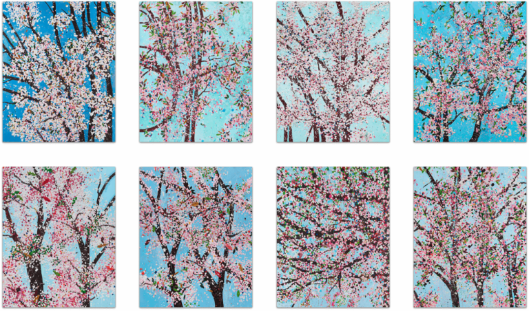 ダミアン・ハーストの「桜」シリーズを解説。日本人が愛する桜を描いた理由や、西洋美術史をふまえた技法について紹介します。