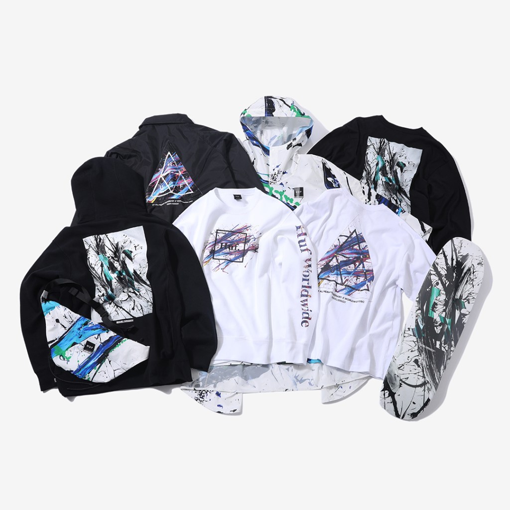 2020年には、アメリカのストリートブランド「HUF」とのコラボレーションも注目された。カプセルコレクションでは、ポンチョやウエストバックをはじめ、Tシャツやスウェットまで多彩なアイテムの展開に注目が集まった。いずれのアイテムも、筆跡が鮮やかに走っており一目見て、山口歴とのコラボアイテムだとわかるのも、ファンにとっては大きな魅力の一つなのではないだろうか。