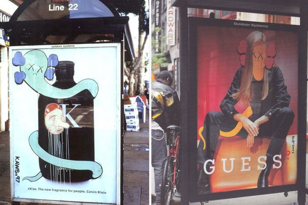 タギング(グラフィティで壁などに自分の名前を残す行為)で「KAWS」というタグを高校生の頃に使い始め、1990年代初頭にニューヨークへ移った後、ストリートで活動を開始。ビルボードや公衆電話ボックスなどに設置された企業広告に、落書きをするようにグラフィティを描き加えて改変し、違う意味にする手法「Subvertising(サブバータイジング)」を使った独自のスタイルでストリートアーティストとしての注目を集め、知名度を上げてきた。