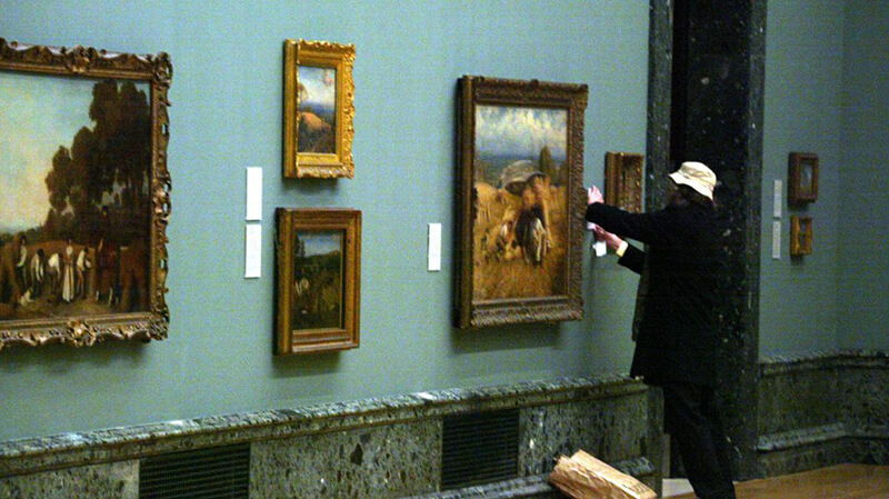 バンクシーの名前が広く知られるきっかけとなった出来事のひとつに、2003年にロンドンのテート・ブリテン美術館で自らの作品を無断で設置したことが挙げられる。