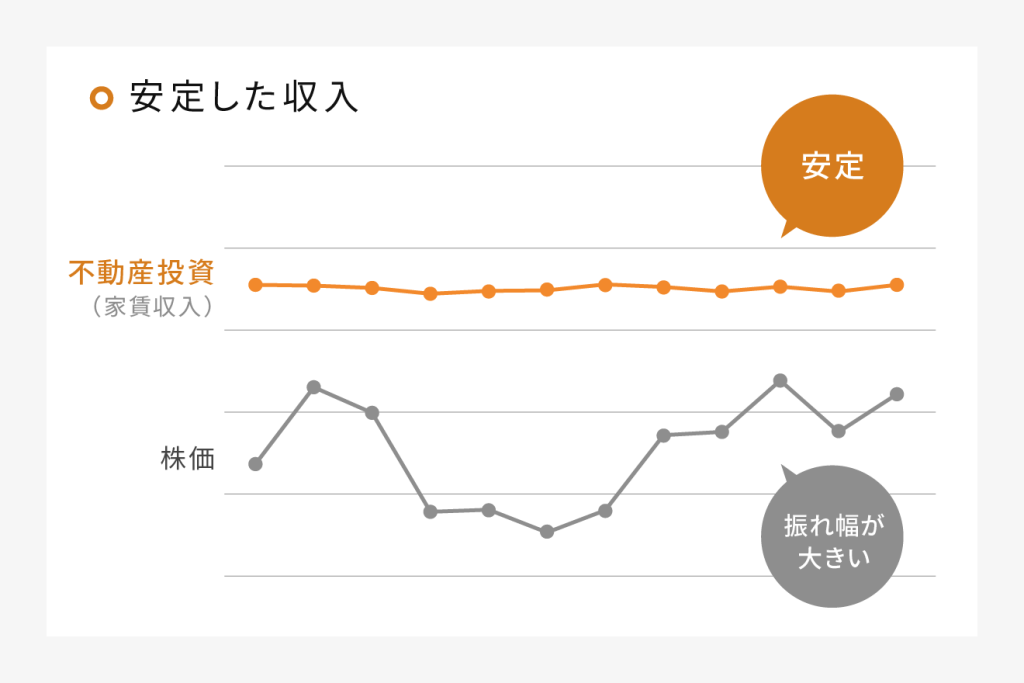 賃料収入は毎月安定して得られることが多いため、不動産投資はさまざまな要因で変動が大きな株式投資などと比較して、リスクが低いと考えられています。