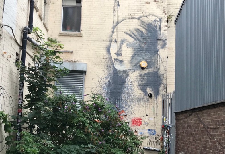 バンクシーのストリートアートの中で、もっとも人気のあるパロディー作品といえば、あのフェルメールの《真珠の首飾りの少女》をもじったものが思い出されよう。2014年、彼の故郷である英国ブリストルの波止場のある外壁に描かれた作品だ。