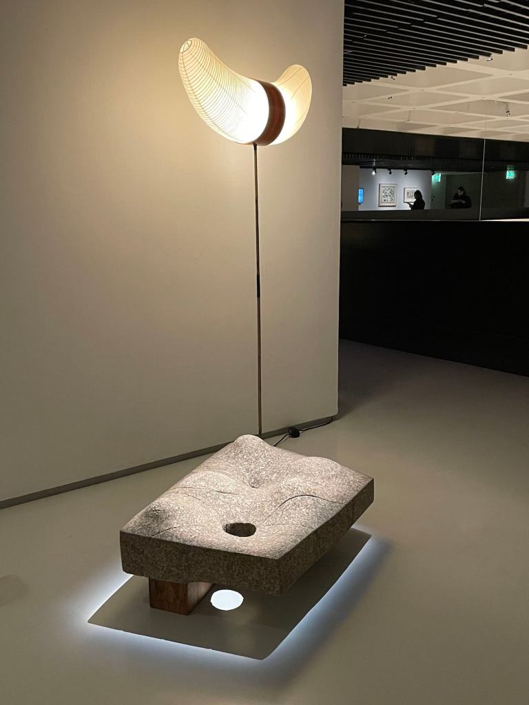 会場の目立たないところに、あの有名なノグチの低いテーブルと紙のランプが、さりげなく置かれてあった。まるで、「あなたが知っているステレオタイプから入ろうとしないでください。ノグチの世界はもっと広く、深いのですよ」といっているようだ。しかし、展示全体を通してノグチの世界観を理解したおかげで、アート作品だけではなく、日常的なインテリアにもノグチの空間認識が根付いており、だからこそ人々の住まいの中、心の中で美しく息づいていることを改めて気付かされたように思う。